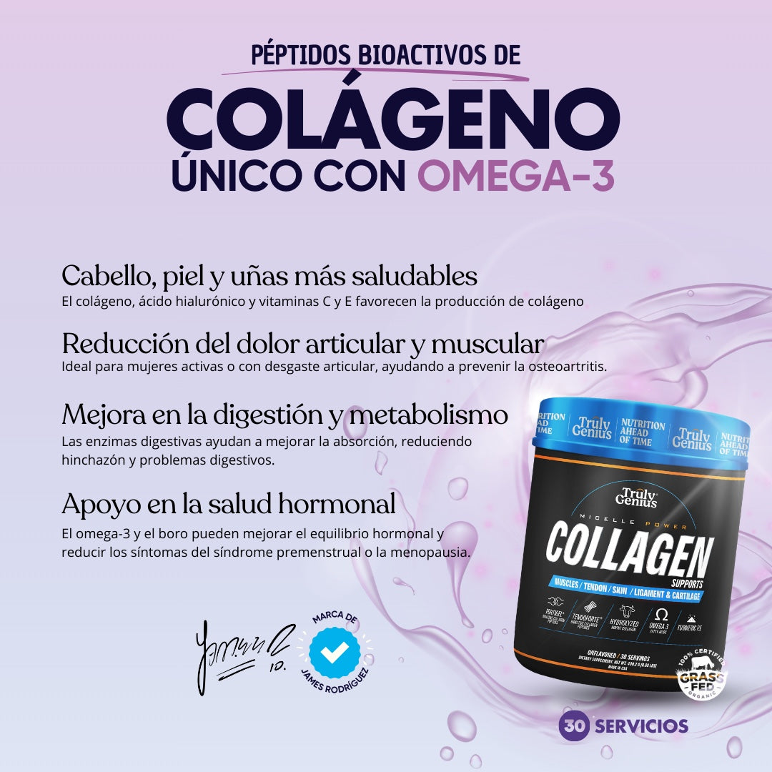Ingrese al círculo de élite del bienestar con Truly Genius Collagen, una fórmula rigurosamente probada por atletas íconos durante dos años para garantizar que se destaque como el suplemento más exclusivo y poderoso del mercado. Con 14 ingredientes clave, incluyendo Fortigel® y TendoForte® junto con nuestra tecnología patentada Micelle Power, está meticulosamente diseñado para apoyar los cartílagos, los tendones y la elasticidad de la piel, ofreciendo beneficios para la salud incomparables.
