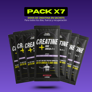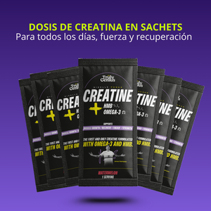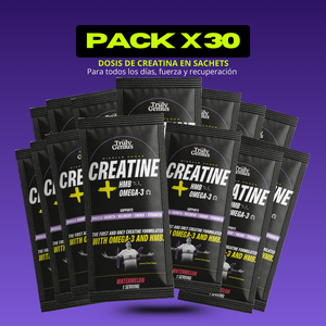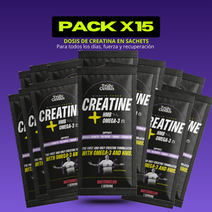 Tu dosis diaria exacta de fuerza y recuperación, ahora en sobres individuales. Este pack incluye (7), (15) ó (30) sachets de nuestra fórmula avanzada de creatina, diseñada para simplificar tu rutina y potenciar tus resultados.