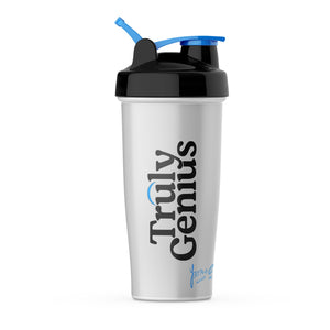 Stay fueled and hydrated on the go with our Shaker Bottle Truly Genius. Perfect for mixing protein shakes, smoothies, and supplements, this bottle is designed to streamline your fitness routine. With a leak-proof lid and convenient carrying loop, it's your reliable companion for workouts, hikes, and busy days. Upgrade your hydration game today!
